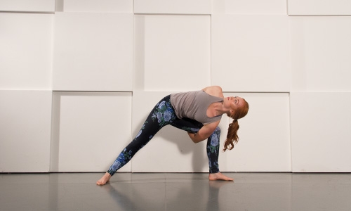 This warrior is all about balance. Be sure to keep your supporting leg soft through the knee so you aren’t locking it out. Reach your fingertips and your toes as far away from each other as possible to lengthen in this stabilizing balance.