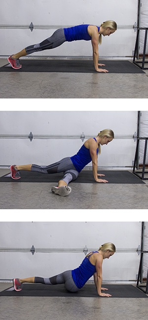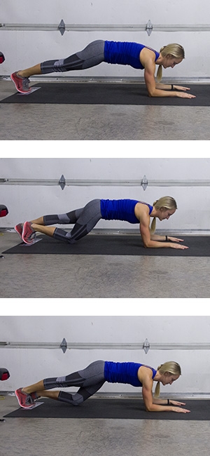 How to: Begin in a forearm plank. Alternate tapping one knee to the floor at a time to target your lower abs.