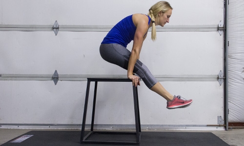 Pro tip: This is a static move, so practice holding it for longer each time you do it. Focus on sucking your belly button in and pulling your hips backward to create the most space between you and the box.