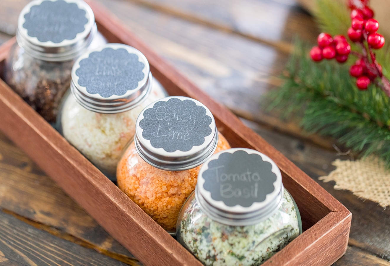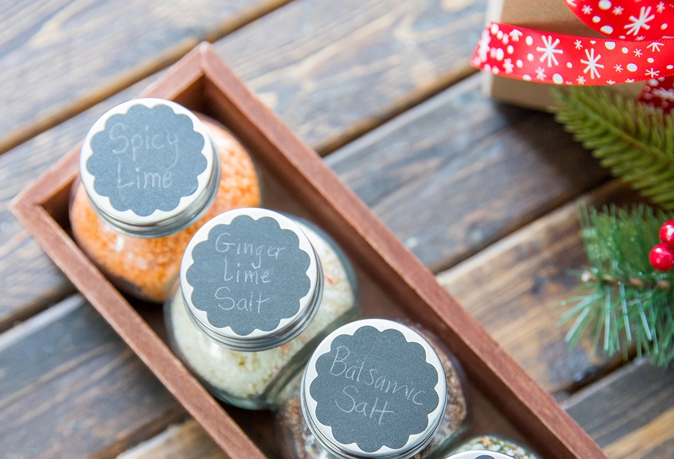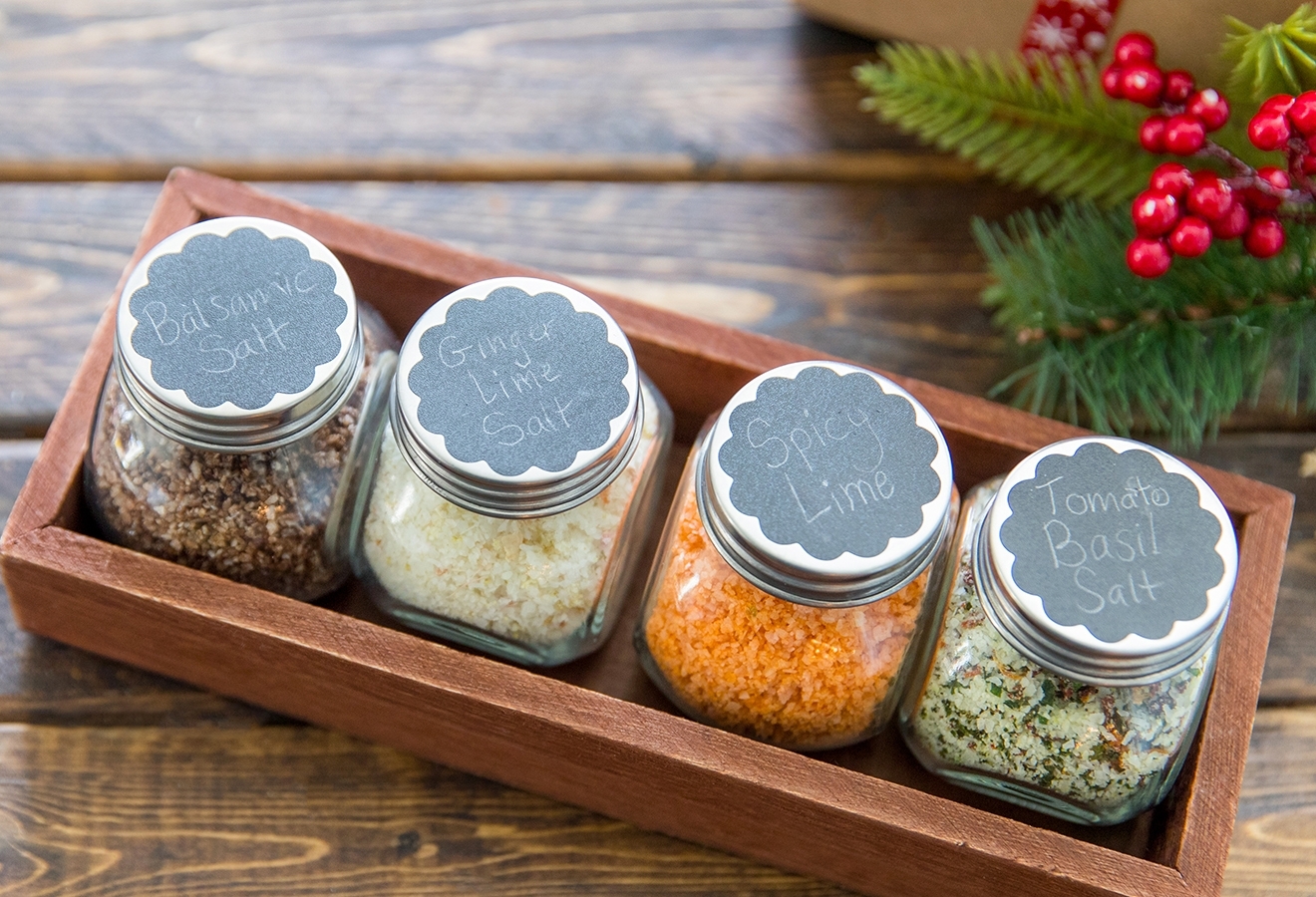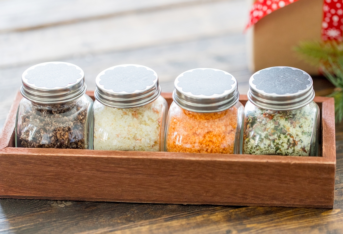 With the holiday season in full swing, it’s that time of the year where gifts of food are brought door to door. While I LOVE coming home to find homemade goodies, sometimes, they aren’t really foods that we should be eating. This year, we wanted to create something that had a longer shelf life, and would encourage the recipient to cook. These flavored finishing salts really elevate any meal and make excellent gifts for neighbors, friends, or that foodie in your life. The best part is that you can really get creative in the kitchen and bring new flavors to almost anything. Plus, you can package ‘em up really cute to gift individually or as a set!
