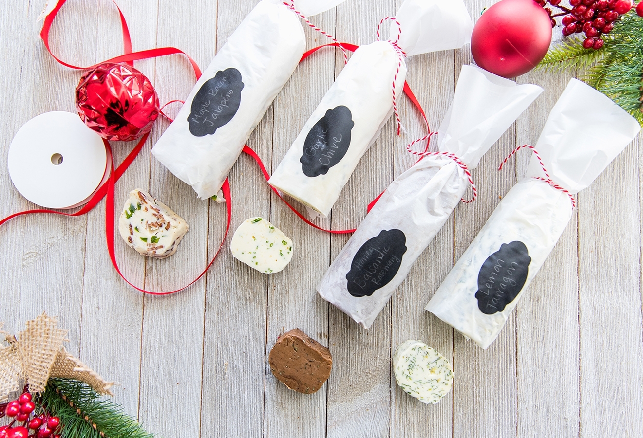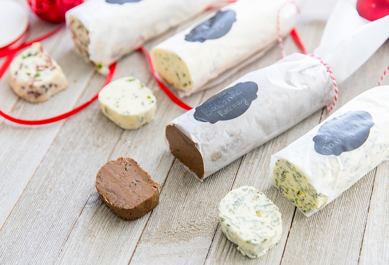 My favorite things about the holidays are the family, friends, and, of course, good food! As much as I love food, though, I don’t love having pounds of cookies, chocolates, and other treats around the house. So when I’m gift giving, I try to do something savory instead of sweet. These delectable compound butters keep for a long time, aren’t sweet, and encourage people to get in the kitchen and start cooking (I think that should be everyone's New Year’s resolution). They’re delicious when you spread them on bread, but I also love to use them to sauté veggies, cook eggs, add to grains, or top off meat or fish. The options are endless, so whip up a batch, and get everyone in the kitchen, enjoying delicious food!