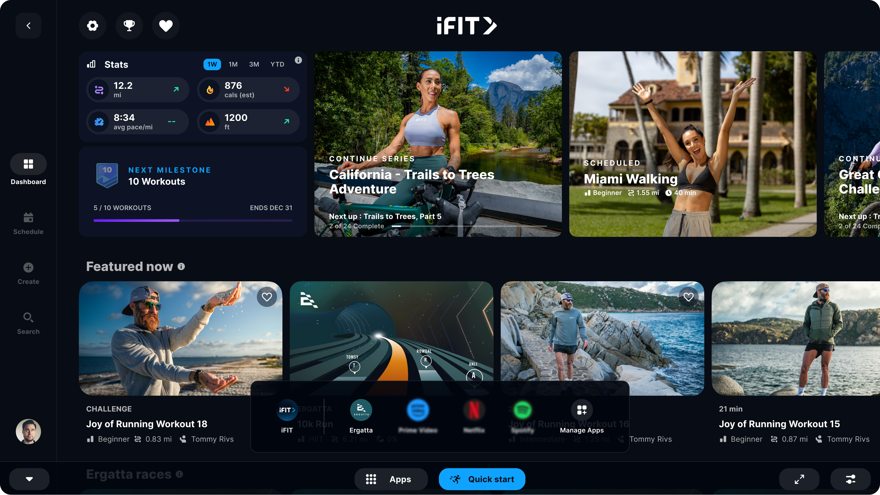 1. Paid iFIT Pro membership required to access Races by Ergatta. Must have the latest iFIT OS installed on an iFIT-enabled treadmill with a touch screen that supports third-party apps.
