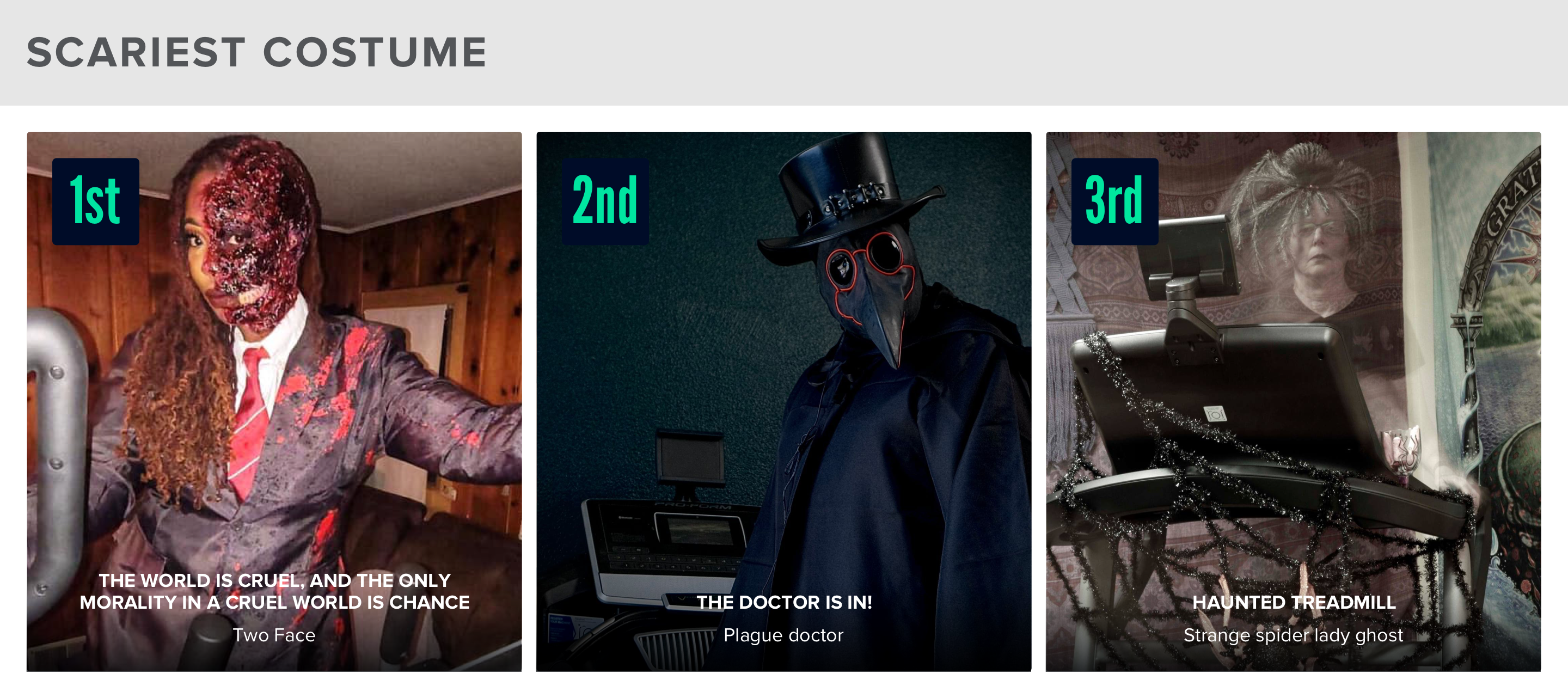 iFit Halloween Costume Contest (the “Contest”) is open only to legal residents of the fifty (50) United States (including the District of Columbia), who are 18 years or older at the time of participation. Void where prohibited by law. Employees of ICON Health & Fitness, Inc. or any of its respective affiliates, subsidiaries, advertising agencies, or any other company or individual involved with the design, production, execution, or distribution of the Contest and their immediate family (spouse, parents, step-parents, siblings, step-siblings, children, and step-children) and household members (people who share the same residence at least three (3) months out of the year) of each such employee are not eligible. The Contest is subject to all applicable federal, state, and local laws and regulations. Participation constitutes entrant’s full and unconditional agreement to these Official Rules and Sponsor’s decisions, which are final and binding in all matters related to the Contest. Winning a prize is contingent upon fulfilling all requirements set forth herein.