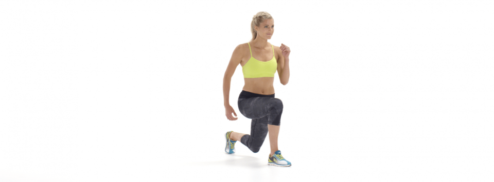 Lunges are basically just an exaggerated form of running. I personally prefer walking lunges over other variations, since I’m a runner. On a track or in an open space, drop into a lunge, then lift your back foot, and take a giant step forward as you drop into another lunge. Doing this, instead of bringing your feet together in between lunges, mimics running and will increase your active hip mobility.