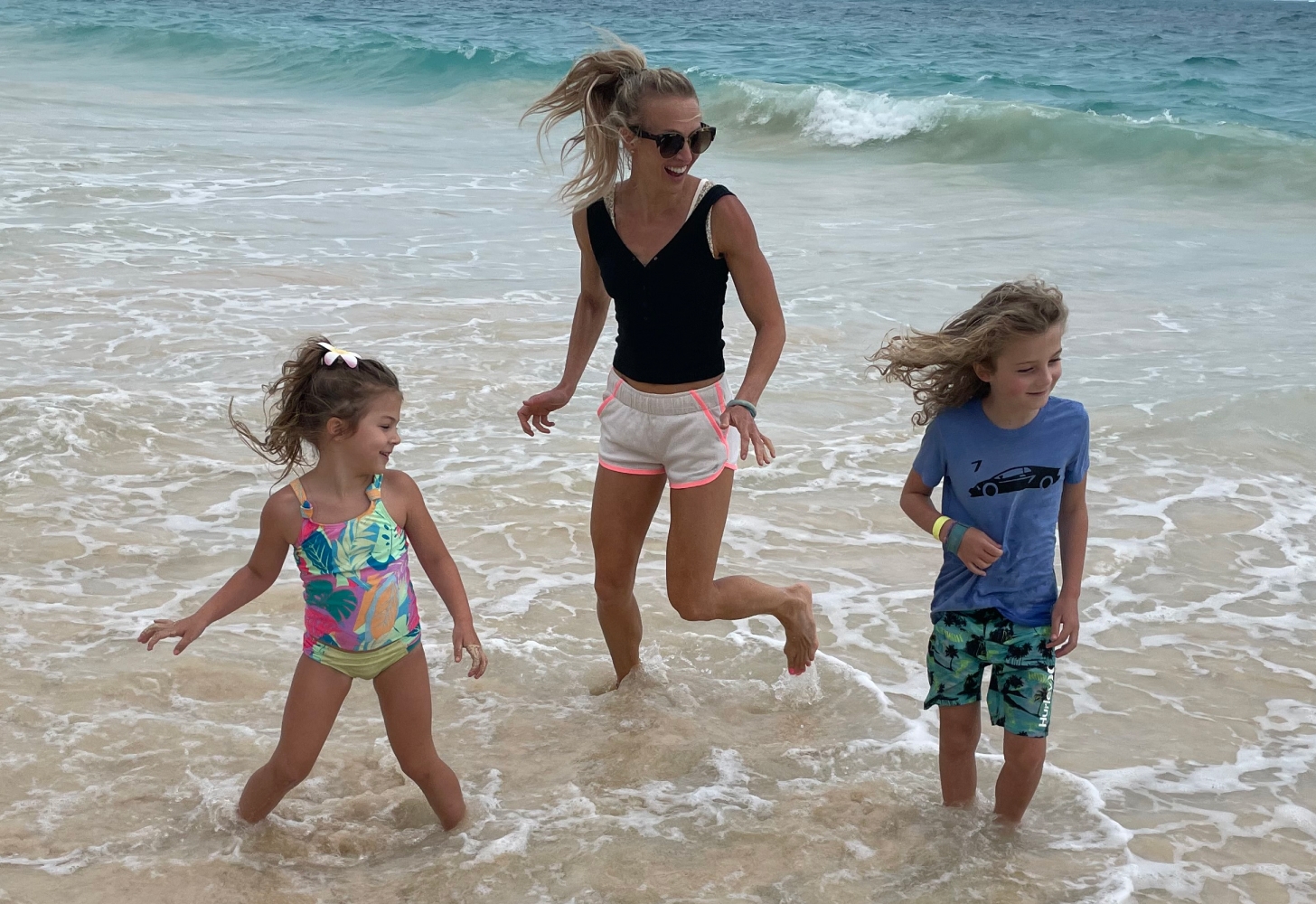 My kids are young—five and seven—so we are still in this awesome phase of shaping them and building their love for movement. We spend a lot of time outside, using the world as our “fun gym.” We go on hiking adventures and play tag. We also do things like climb rocks, paddleboard, ski, and swim. We love it all and encourage our kids to try everything.