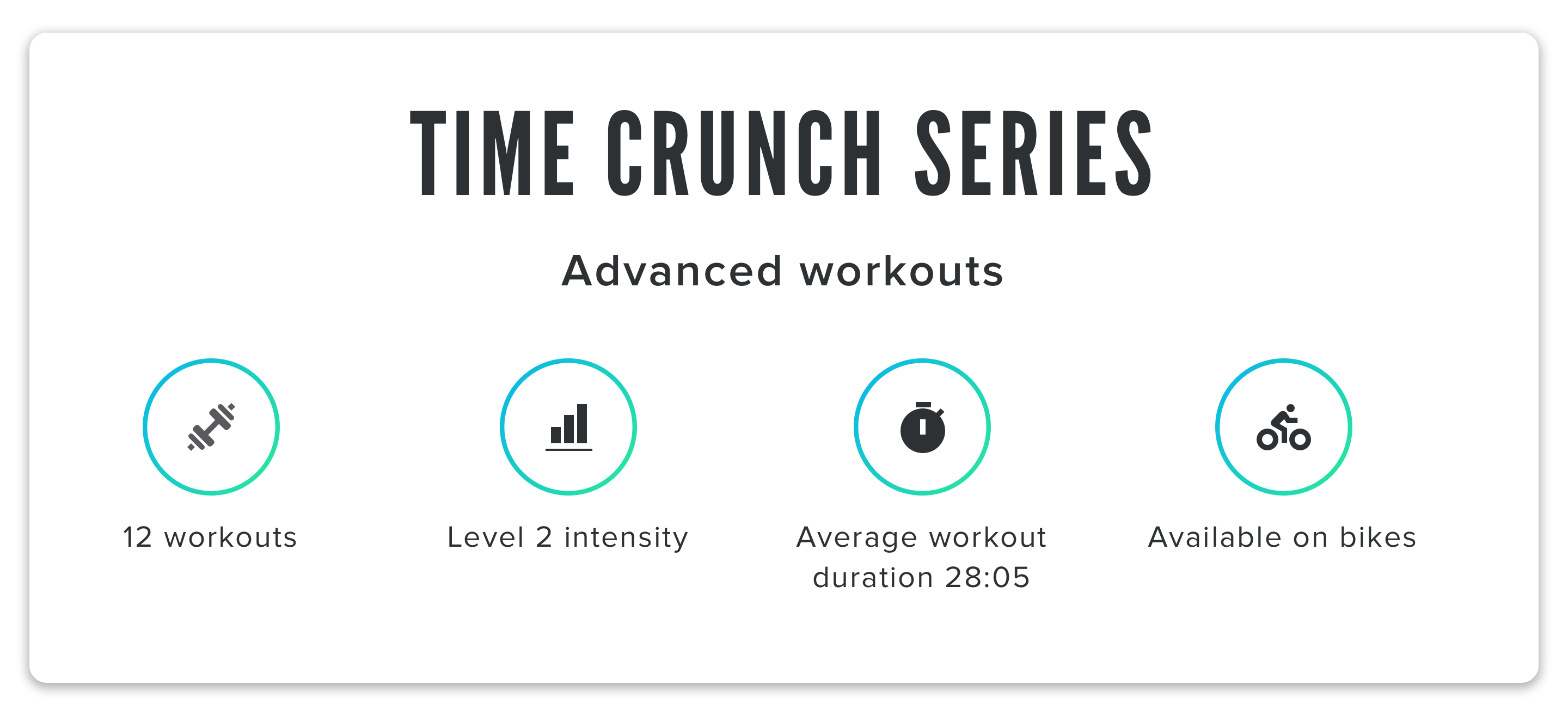 Ashley will lead you through a total of 12 workouts in this series. Each ride is designed to help you build strength and endurance in a short workout. You’ll push through strength climbs, intervals, and speed workouts.
