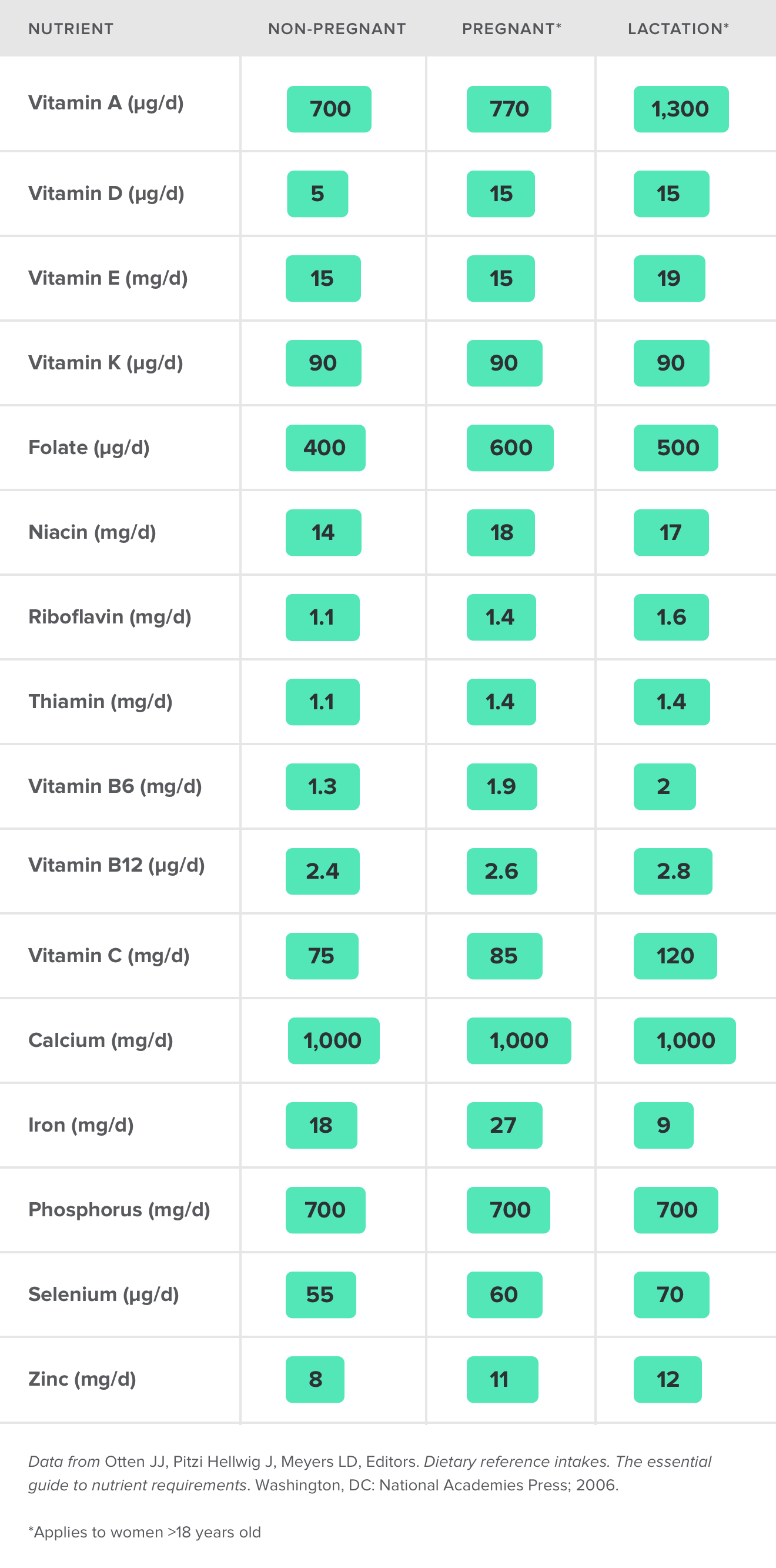 Your needs for most vitamins and minerals increase during breastfeeding, as well, so continue to take your prenatal vitamins. It is recommended to breastfeed for the first year of your child’s life, and I encourage women to give themselves that full year to recover, get back into shape, and lose weight.