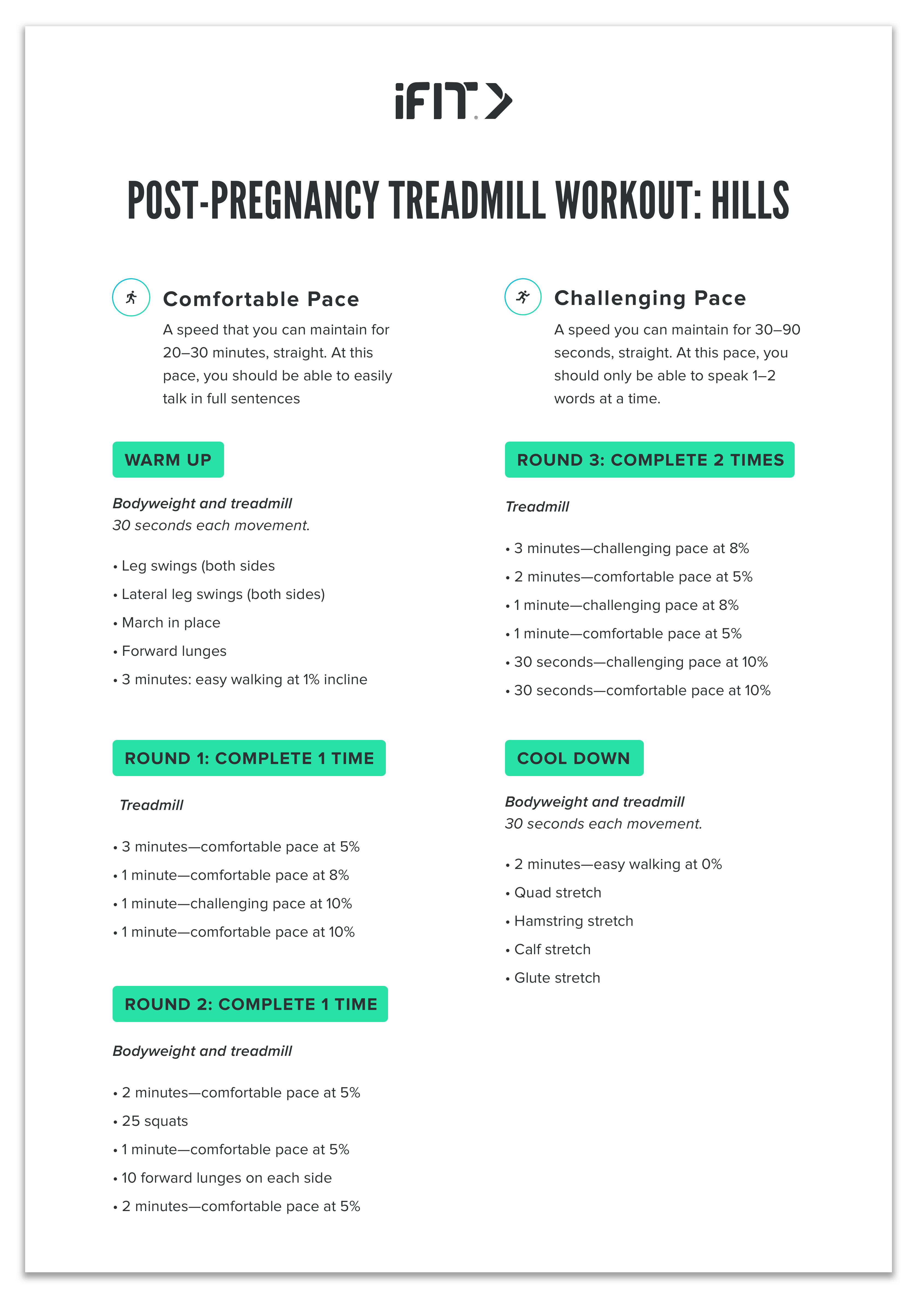 Treadmills have a bad reputation for being high impact, which can be intimidating when your body has had so many recent changes. No need to fear! During this workout, we’ll keep the speeds low and the inclines moderate.