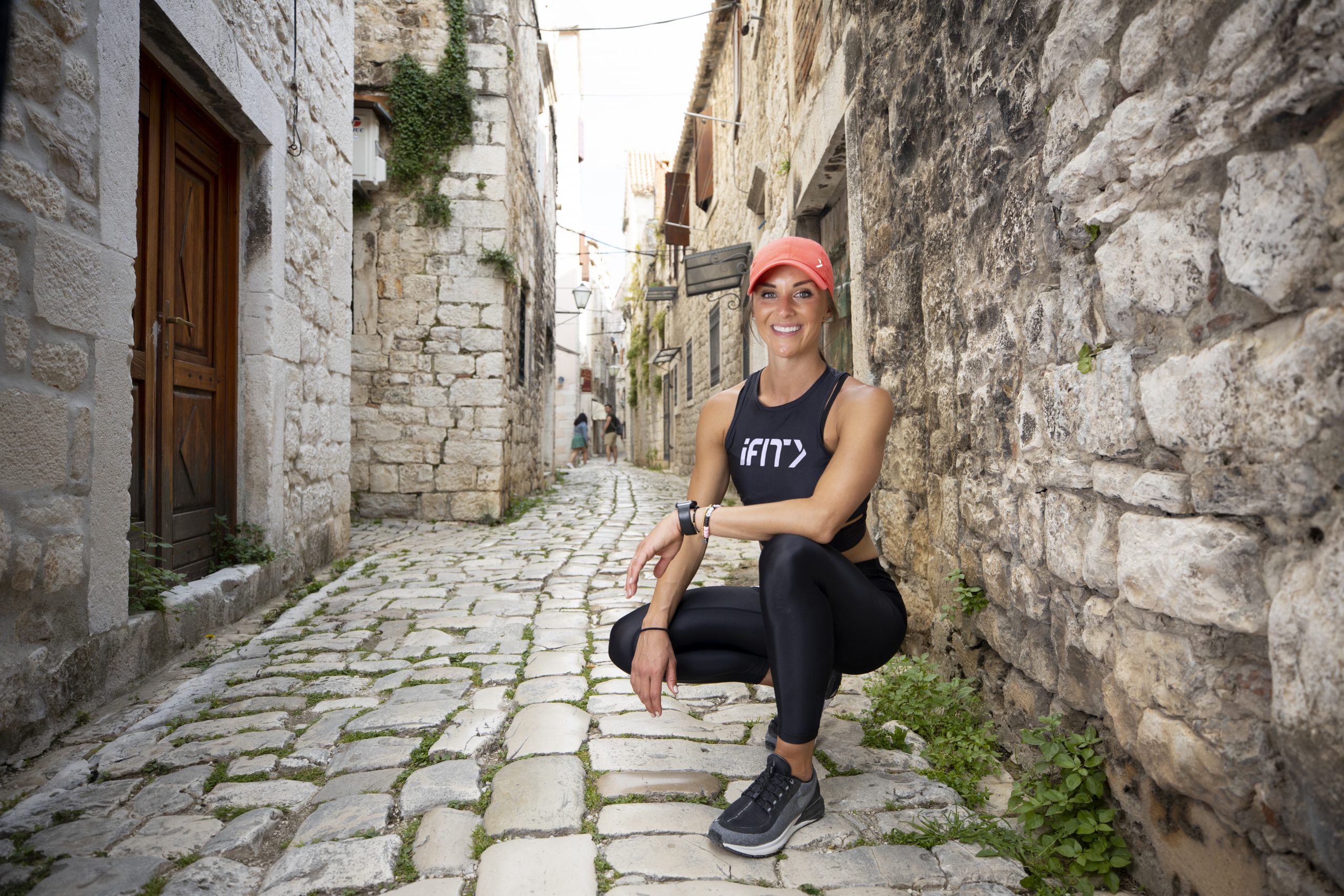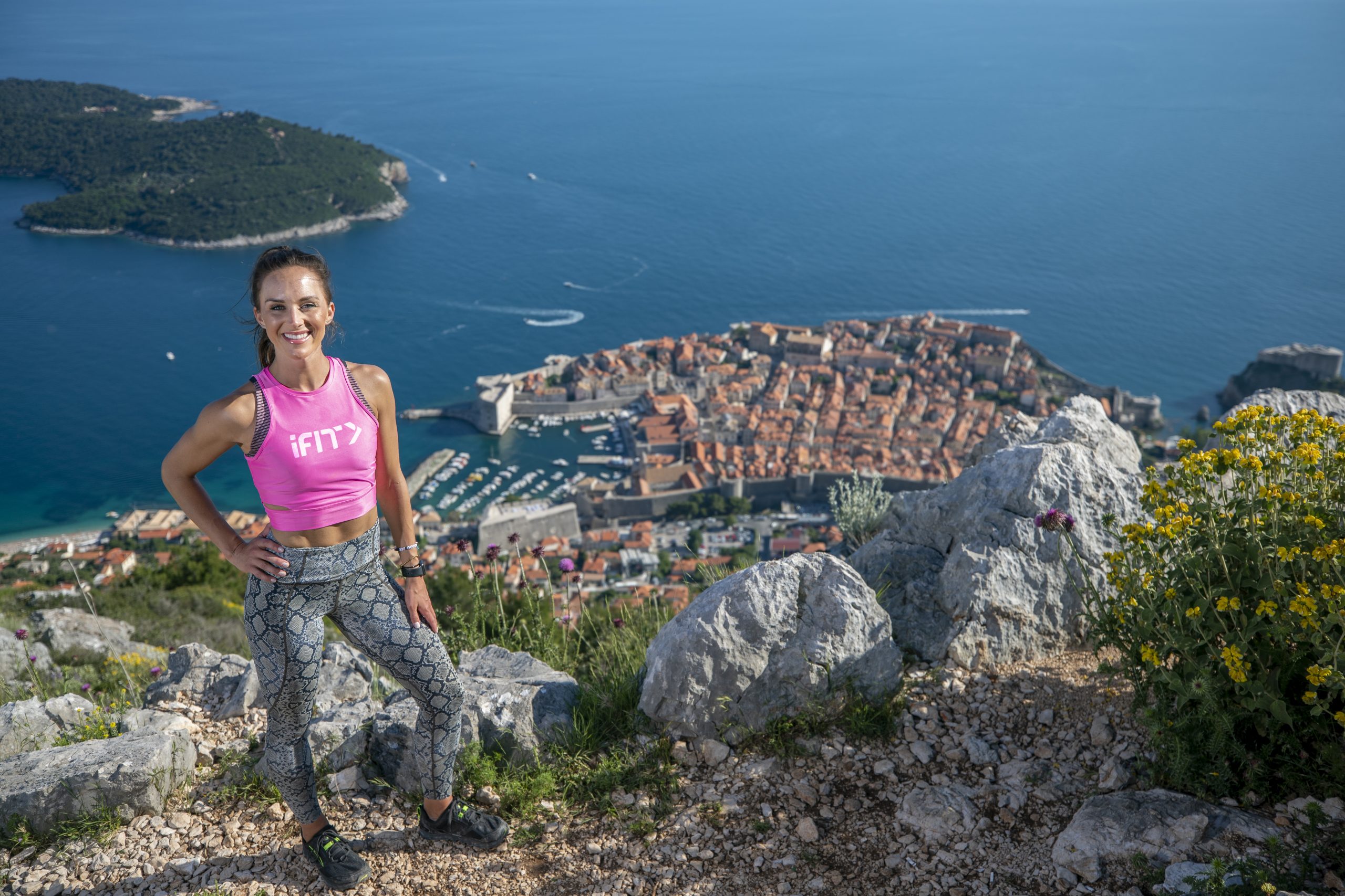 Kelsey stands on the Dubrovnik Overlook during a workout in the
