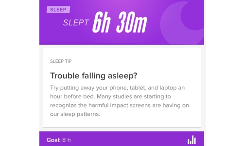 The Coach app gives you two new tips every day—one for activity and one for sleep. They’re meant to share some insight, and hopefully, keep you on the right track.