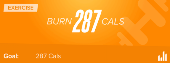 For Exercise, my goal is to burn 287 calories during my workout. I haven’t done my workout yet, so I still need to burn 287 calories.