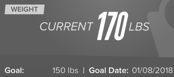 For weight, my goal is to weigh 150 pounds by January 8, 2018. Right now, I’m at 170. If I never log my weight, this section will never change. My current weight and goal date will adjust accordingly after I log a new weight.