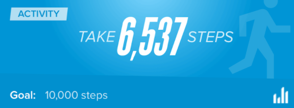 From your Home screen on the app, you’ll notice it’s divided into Today’s Plan and Dashboard. Today’s Plan shows you the plan for the day. At a quick glance, it tells you where you’re at and what you need to do in order to reach your daily goal. You’ll see 5 sections: Activity (blue), Exercise (orange), Nutrition (green), Sleep (purple), and Weight (gray). We’ll use my stats below as an example. (Once I complete a goal, the section will say COMPLETED. If I do more than my goal, it’ll say EXCEEDED.) For Activity, my goal is to take 10,000 steps every day. So far, I still need to take 6,537 steps in order to reach my daily goal.