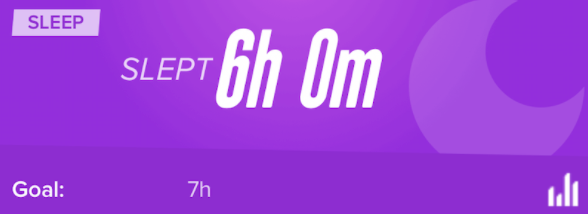 For Sleep, my goal is to sleep at least 7 hours a night. But it shows that I only got six hours of sleep the night before, so I didn’t reach my goal.