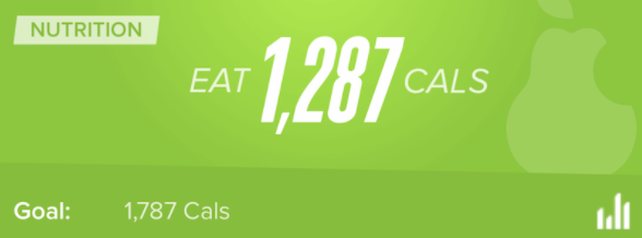 For Nutrition, my goal is to consume 1,787 calories. I’ve already eaten 500, so that means I have 1,287 left to eat in order to reach my goal.