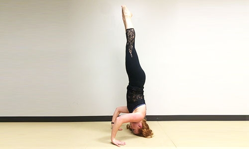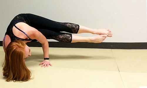 Lift slowly from tripod to a headstand and engage your core to straighten your legs in a controlled manner.