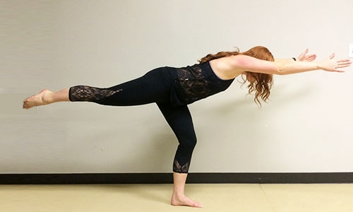Try to keep your hips square to the floor, and keep your knee soft on your stabilizing leg as you lengthen your body. Focus on your breathing as you hold this pose.